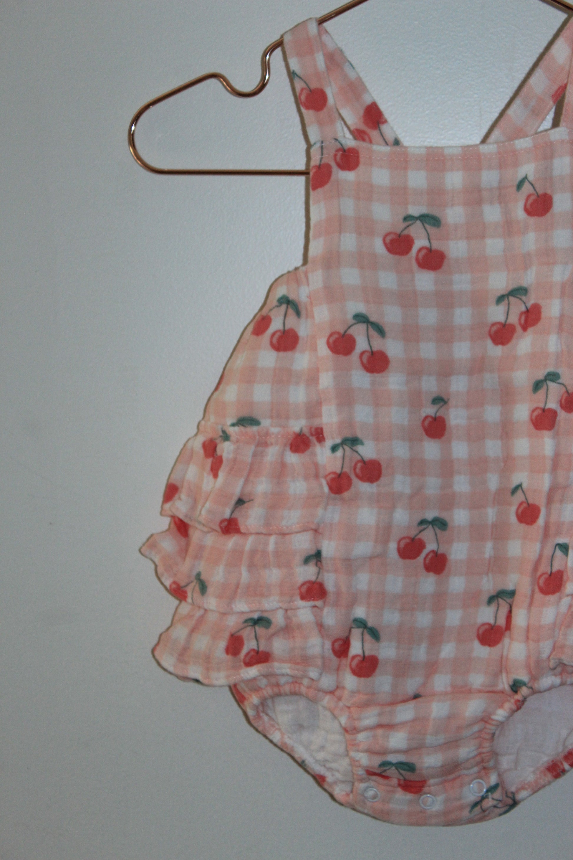 Gingham Cherries Muslin Ruffle Sunsuit
