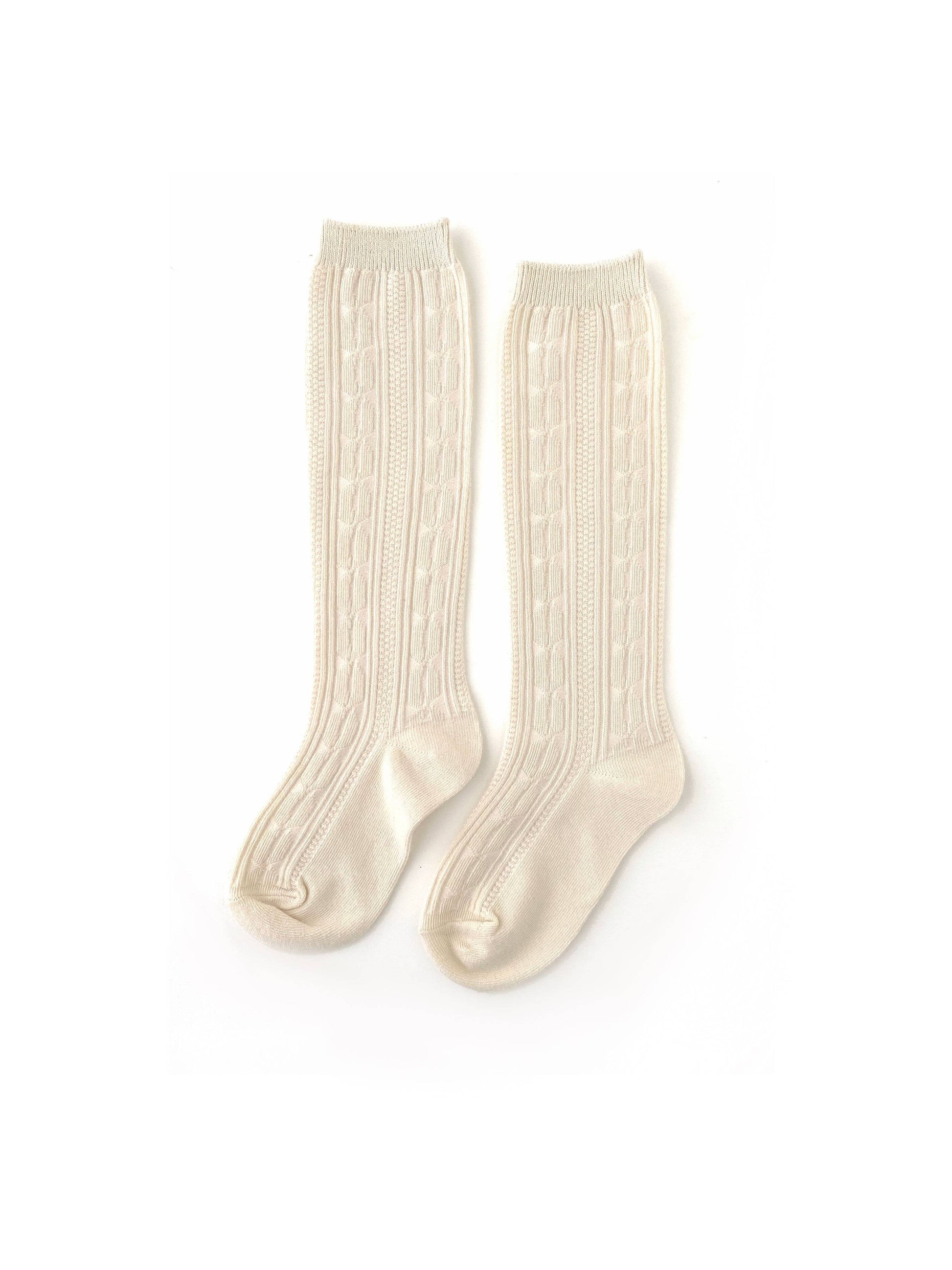 Vanilla Cable Knit Knee High Socks for babies, toddlers and children! Our cable knit knee high stockings are our signature style of socks. Perfect for all seasons and styles- we are certain they'll fit into your little ones wardrobe.