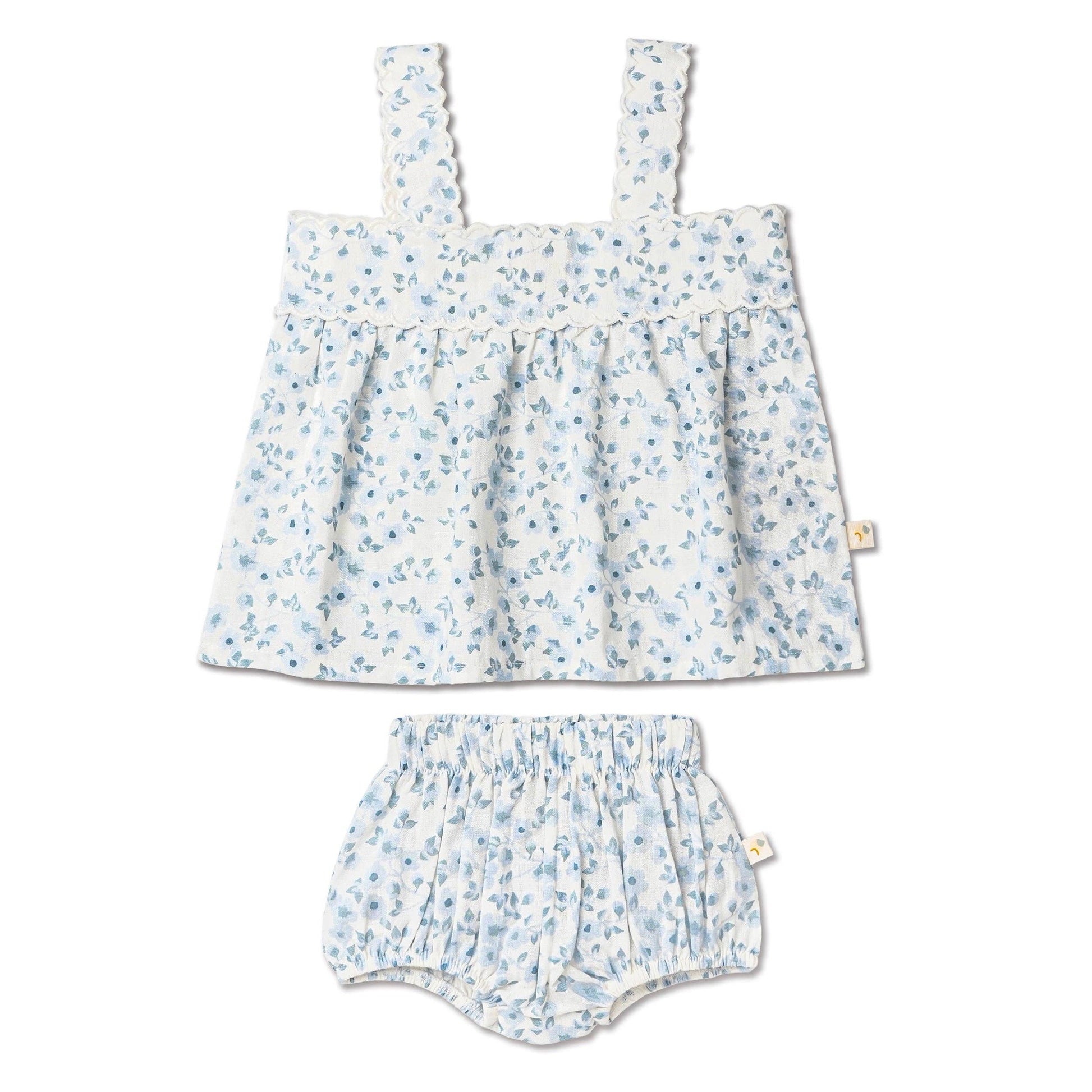 Organic Scalloped Top & Bloomers Set - Blue Vines