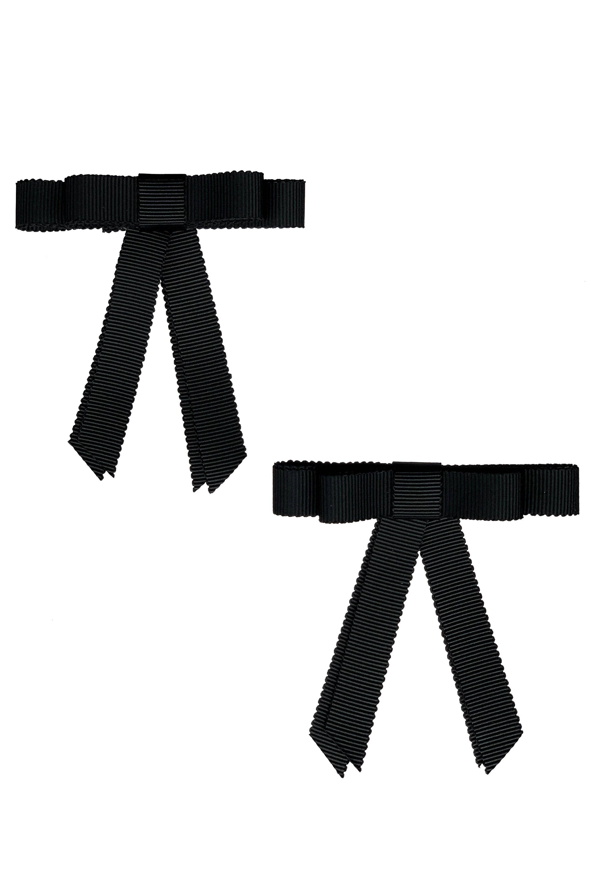 Scalloped edged grosgrain ribbon created a double looped bow with dangling ribbon. Each loop is made with three layers of ribbon. Comes on an alligator clip. Size is about 3.5".