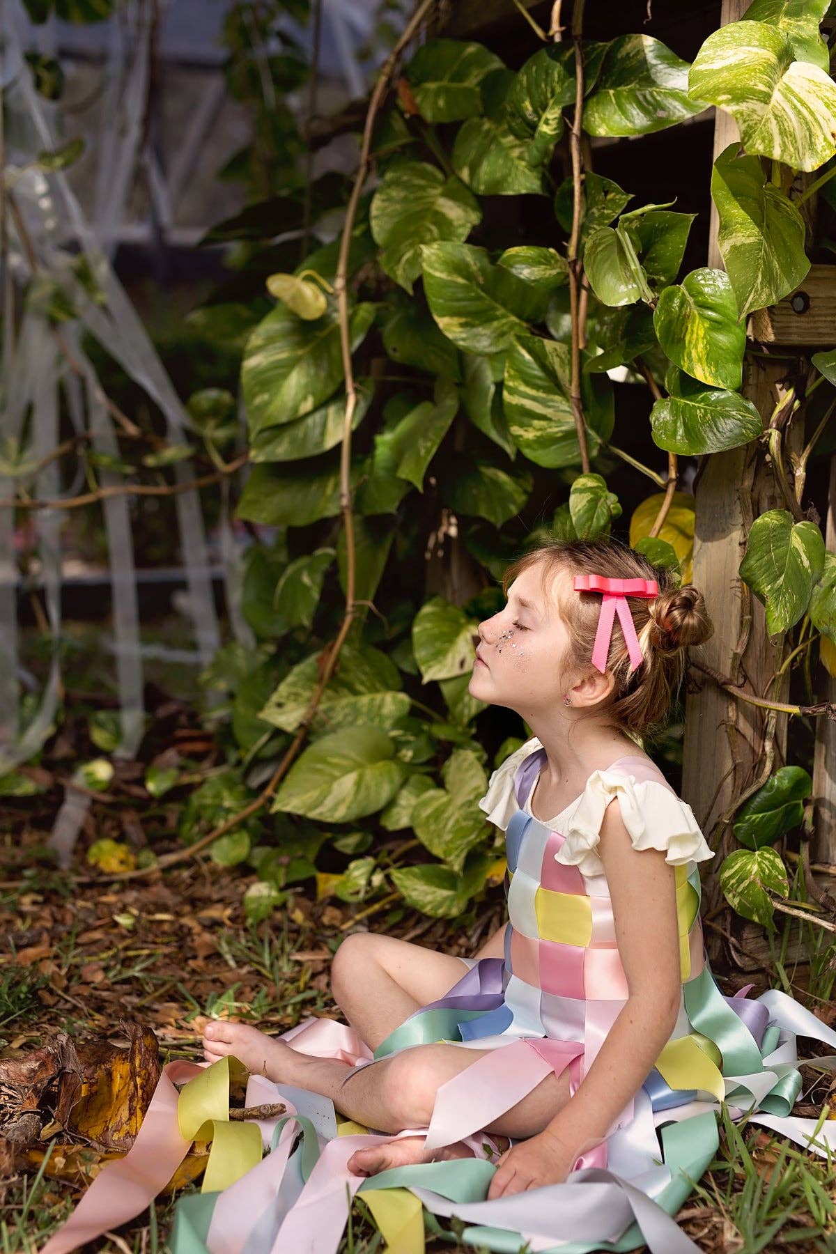 Scalloped edged grosgrain ribbon created a double looped bow with dangling ribbon. Each loop is made with three layers of ribbon. Comes on an alligator clip. Size is about 3.5".