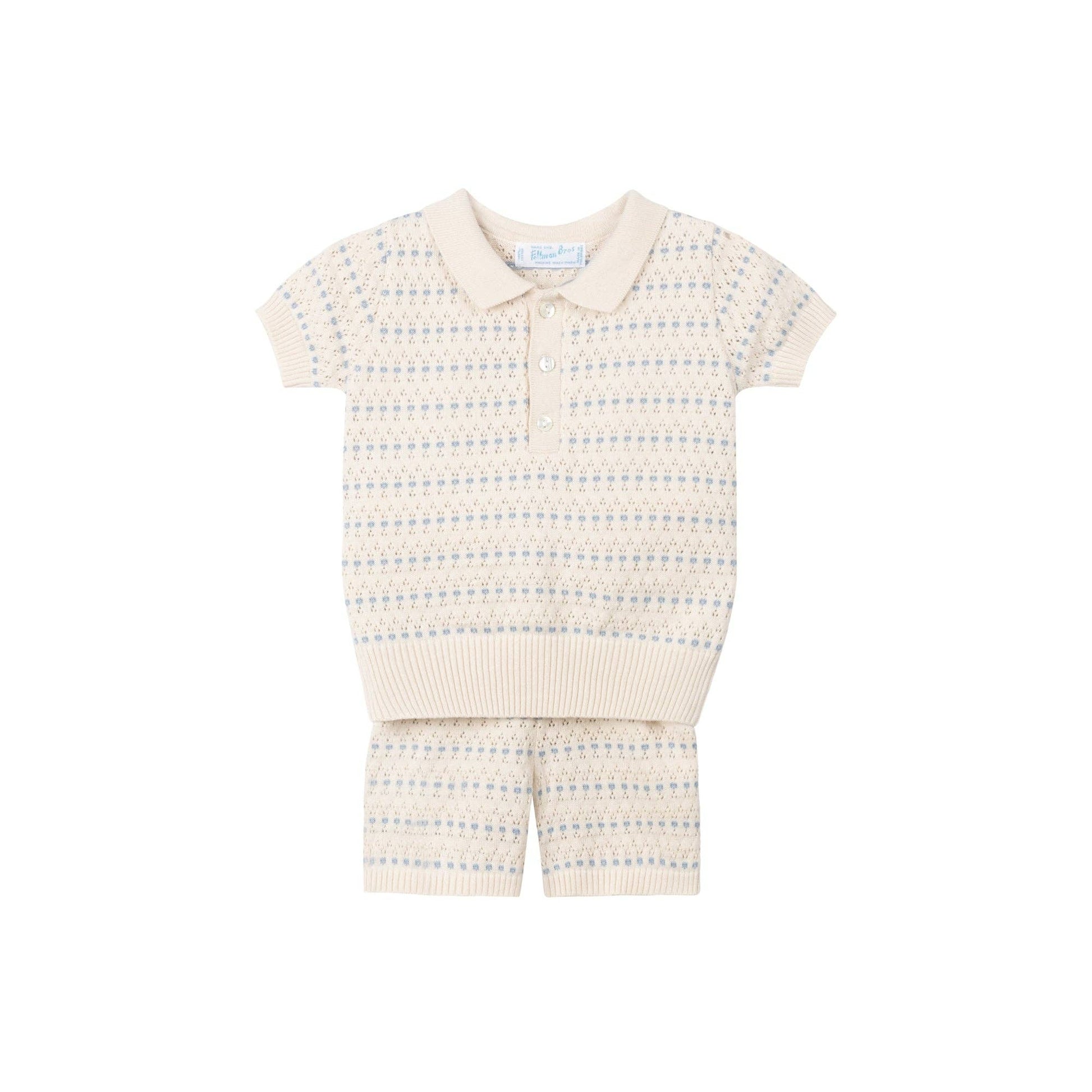 Toddler Boys Pointelle Jacquard Knit Set: Ecru